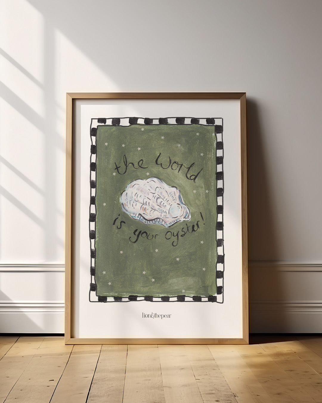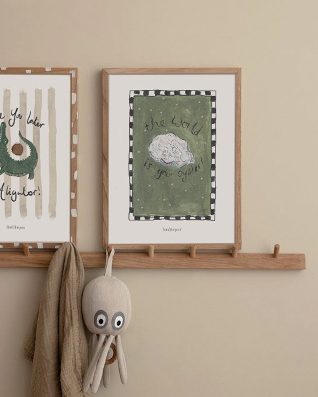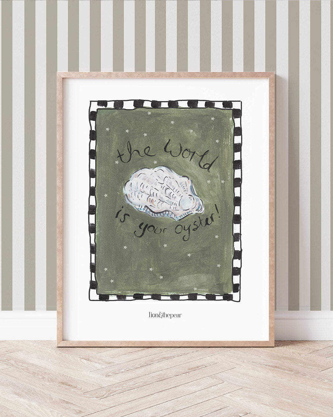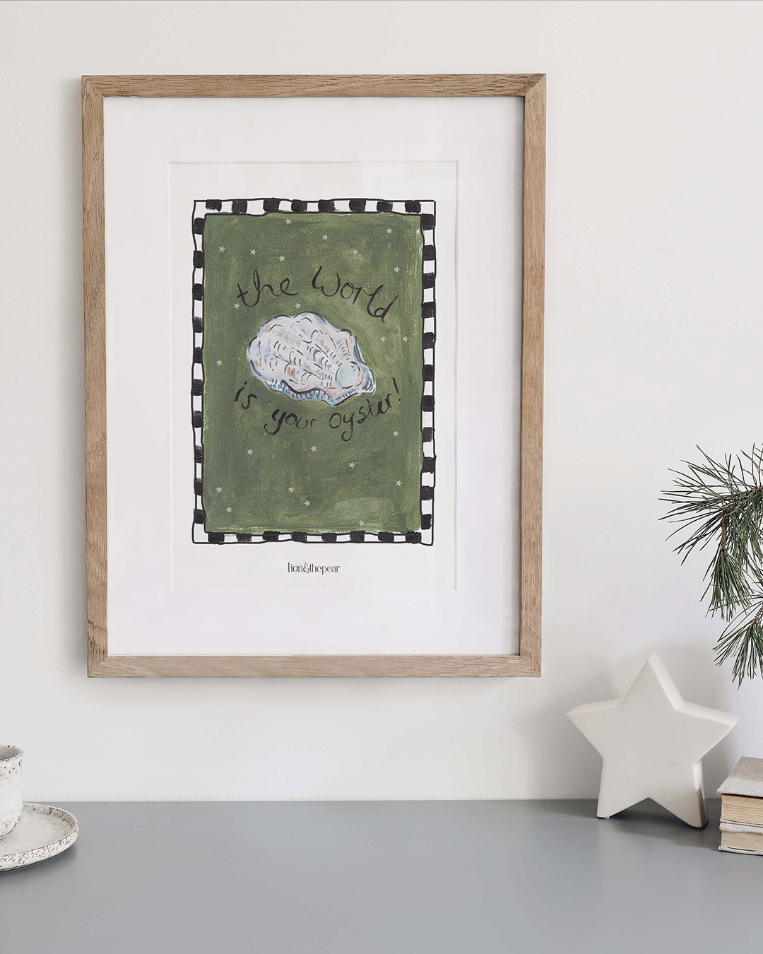 This print forms part of the series "wonderful words" painted in acrylics with a nod to Scandi illustrative style. 'The World is your oyster.' features a charming little shell & pearl illustration. Let this little piece inspire your little one's mind and bring a timeless essence to their walls.
