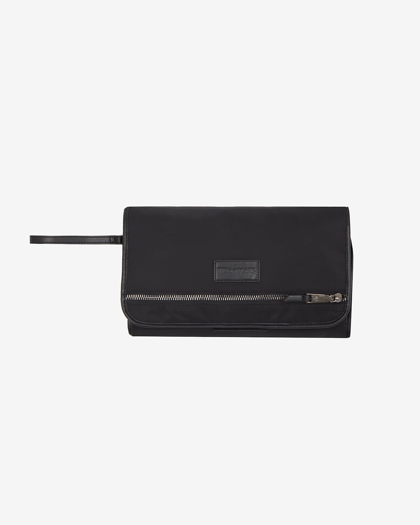 Spot clean clutch with a damp cloth. Removable mat can be washed on delicates at 30 degrees.