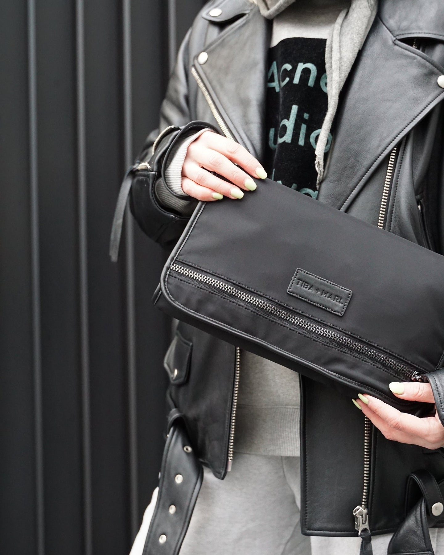 ETTA is lightly padded and set back to lux gunmetal bespoke hardware and trimmed with vegan leather.