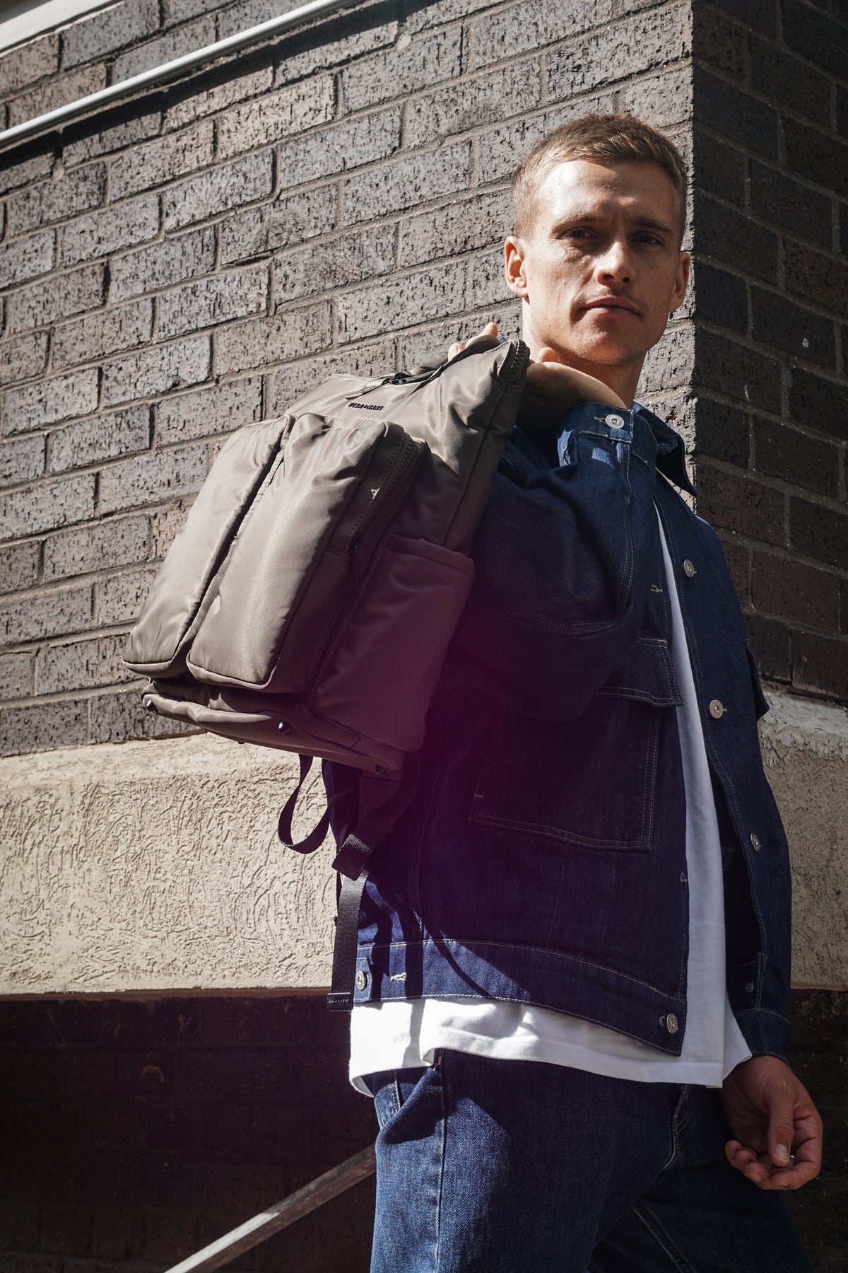 Ozzy's hybrid design lets you wear this bag as a backpack, or hand-held tote, and can also be clipped to your buggy for hands-free strolling. Crafted from Chocolate toned Nylon, set back to black hardware, with 100% recycled lining + change mat.